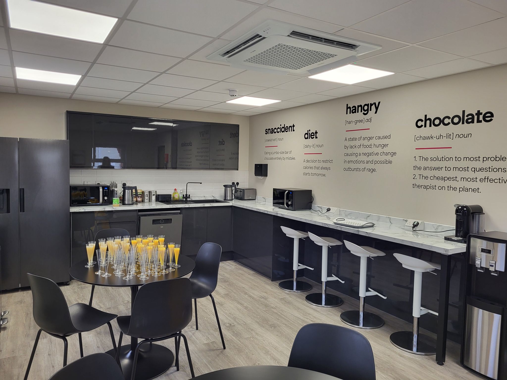 Social areas were integrated to provide employees with spaces for relaxation and informal interactions, fostering a sense of community and encouraging creativity. A dedicated breakout area with soft seating and communal zones offered opportunities for both individual focus and group discussions, supporting a range of working activities.