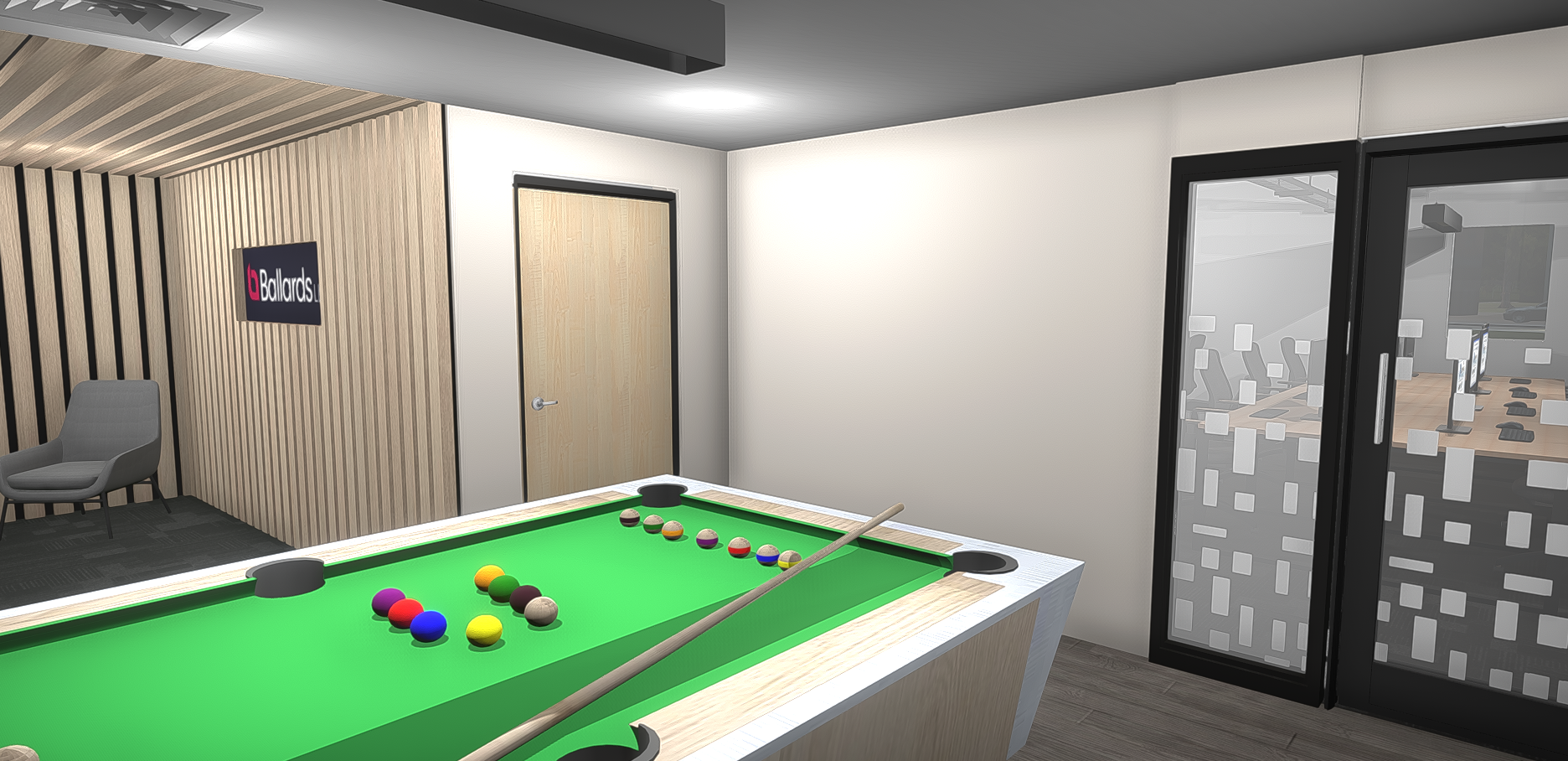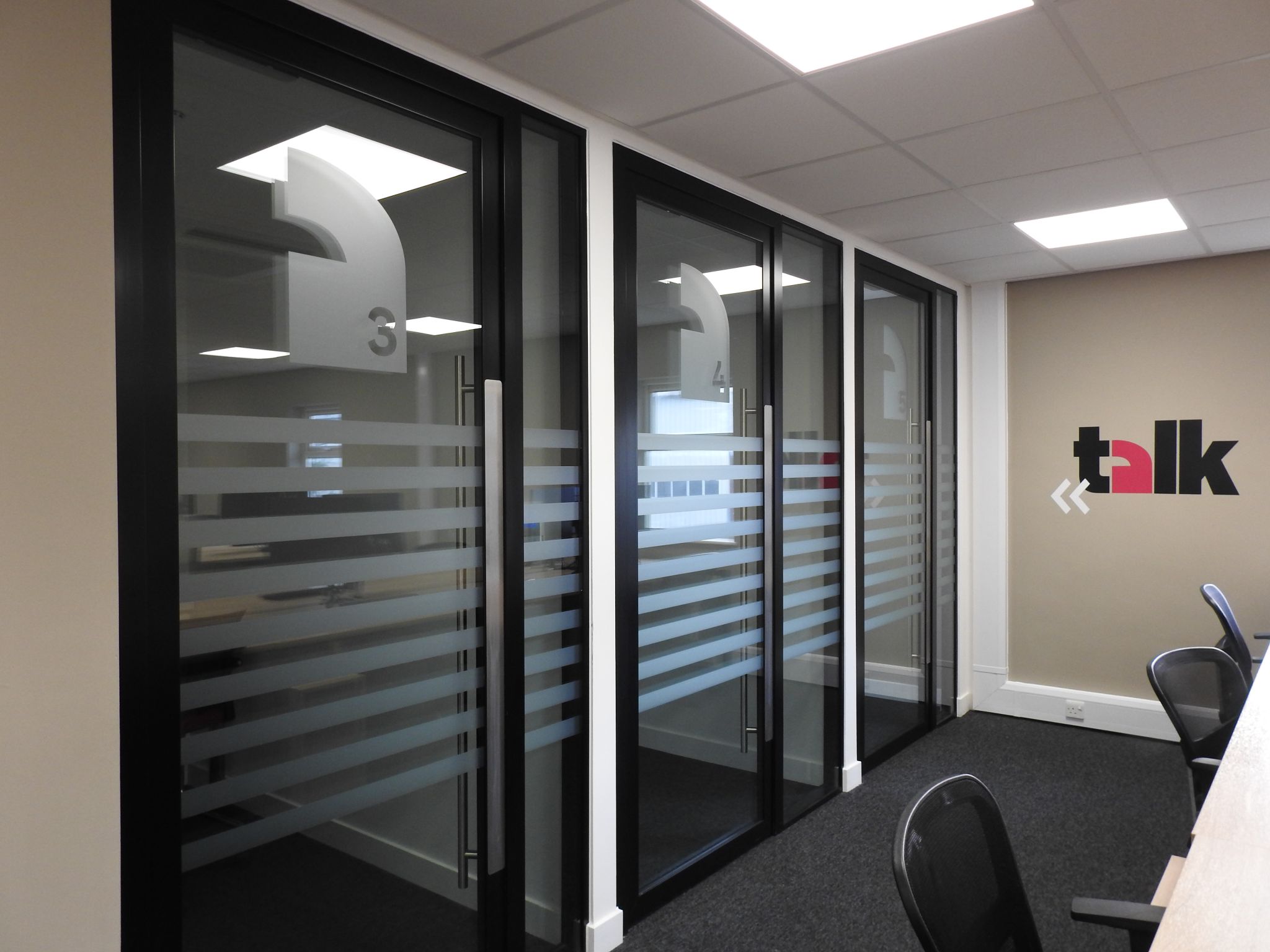Glazed partitioning was used to define meeting rooms, providing privacy while maintaining visual connectivity with the rest of the office. The open-plan area was designed to encourage collaboration, with adaptable furniture configurations that allow teams to reconfigure their workspace as needed.